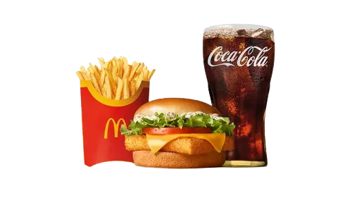 Vyzkoušej náš nový Filet-O-Fish Deluxe. Rybí filé v křupavé strouhance spolu s plátkem s čedarem, čerstvým rajčetem, ledovým salátem a výraznou tatarkou. To vše zabalené v nadýchané pšeničné housce. Střední nápoj + Střední Hranolky.