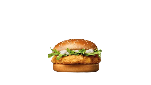 Jemné kuřecí maso v kořeněné strouhance, čerstvý ledový salát a majonézová omáčka. Dokonalé spojení chutí v housce sypané sezamem.