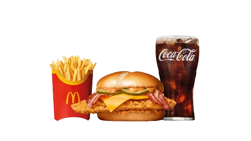 Křupavé a zároveň šťavnaté 100% kuřecí prso, plátek s čedarem, slanina, nakládané okurky a k tomu chuťově výrazná krémová BBQ omáčka. To všechno v nadýchané housce. Lehce pikantní a hlavně neodolatelný! Střední nápoj + Střední Hranolky.