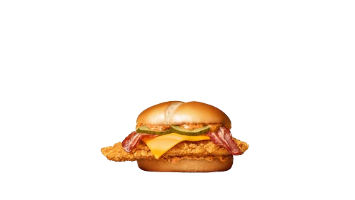 Křupavé a zároveň šťavnaté 100% kuřecí prso, plátek s čedarem, slanina, nakládané okurky a k tomu chuťově výrazná krémová BBQ omáčka. To všechno v nadýchané housce. Lehce pikantní a hlavně neodolatelný!