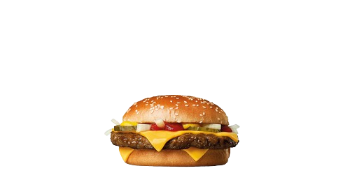 Pravá klasika. Velký plátek grilovaného hovězího masa v žemli sypané sezamem. K tomu hořčice, kečup, čerstvá cibule, okurka a dva plátky s čedarem. Nezapomenutelná chuť.